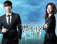 《来自星星的你》是韩国SBS电视台2013年12月末播出的水木特别企划剧,以1609年(光海1年)《朝鲜王朝实录》中记载的不明飞行物为基础加以作家不可思议的想象力,讲述从外星来到朝鲜时代的神秘男人都敏俊(金秀贤饰)就此生活至400年后的现代,在和身为国民顶级女演员的千颂伊(全智贤饰)陷入爱情的过程中,不同星球的两人消除彼此之间的误解,克服危险追寻真爱的浪漫爱情喜剧。