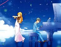 电视动画《四月是你的谎言》改编自日本漫画家新川直司原作的同名漫画。故事讲述了拥有少见才能的中学男生(钢琴家),和女生(小提琴家)共同努力、成长的青春物语。在2014年3月21日举行的noitaminA的10周年纪念活动”noitaminA发表会2014 ~10th Anniversary~“上,《四月是你的谎言》宣布TV动画化。电视动画于2014年10月9日首播,全22话,与漫画同时完结。在2015年5月15日发售的漫画最终卷第11卷特装版,则同捆推出了OAD动画。